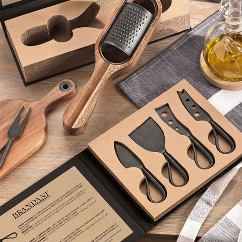 A cut to banality. The industrial cheese knife set guarantees the maximum expression in terms of quality, thanks to the protagonist features on the table. Four, the knives included in the set: almond, flat surface, rectangular blade and stapled. Elements that, combined with a unique design, make the industrial cheese knife set a first-rate product.