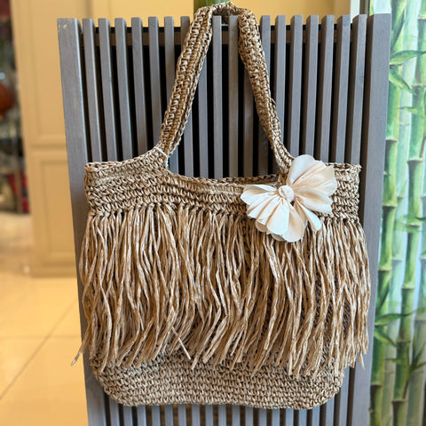Bomboniera Fiori di Lena Estate Bag in Rafia con Fiore Avorio